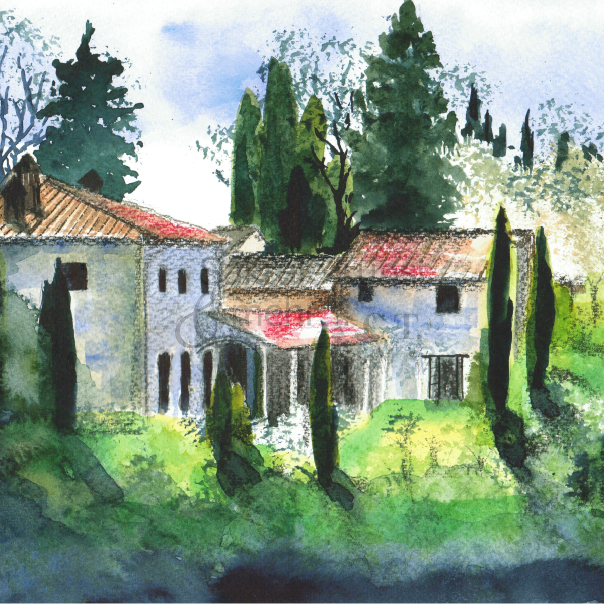 Toscana Morgenstimmung - Aquarell